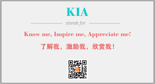 以上为Know me, Inspire me, Appreciate me!英文缩略词KIA的中文解释,以及该英文缩写在英语的流行度、分类和应用领域方面的信息。