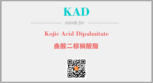 以上为Kojic Acid Dipalmitate英文缩略词KAD的中文解释,以及该英文缩写在英语的流行度、分类和应用领域方面的信息。