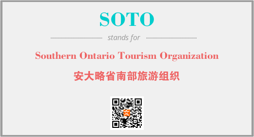 英文缩略词“SOTO”经常作为“Southern Ontario Tourism Organization”的英文缩写来使用,中文表示:“安大略省南部旅游组织”。本文将详细介绍英文缩写词SOTO所代表英文单词,其对应的中文拼音、详细解释以及在英语中的流行度。此外,还有关于缩略词SOTO的分类、应用领域及相关应用示例等。