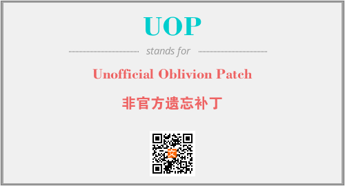 英文缩略词“UOP”经常作为“Unofficial Oblivion Patch”的英文缩写来使用,中文表示:“非官方遗忘补丁”。本文将详细介绍英文缩写词UOP所代表英文单词,其对应的中文拼音、详细解释以及在英语中的流行度。此外,还有关于缩略词UOP的分类、应用领域及相关应用示例等。