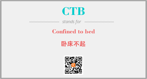 英文缩略词“CTB”经常作为“Confined to bed”的英文缩写来使用,中文表示:“卧床不起”。本文将详细介绍英文缩写词CTB所代表英文单词,其对应的中文拼音、详细解释以及在英语中的流行度。此外,还有关于缩略词CTB的分类、应用领域及相关应用示例等。