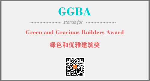 上述内容是“Green and Gracious Builders Award”作为“GGBA”的缩写,解释为“绿色和优雅建筑奖”时的信息,以及英文缩略词GGBA所代表的英文单词,其对应的中文拼音、详细解释以及在英文中的流行度和相关分类、应用领域及应用示例等。