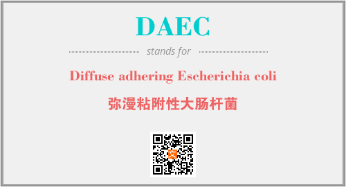 以上为Diffuse adhering Escherichia coli英文缩略词DAEC的中文解释,以及该英文缩写在英语的流行度、分类和应用领域方面的信息。