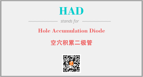 上述内容是“Hole Accumulation Diode”作为“HAD”的缩写,解释为“空穴积累二极管”时的信息,以及英文缩略词HAD所代表的英文单词,其对应的中文拼音、详细解释以及在英文中的流行度和相关分类、应用领域及应用示例等。