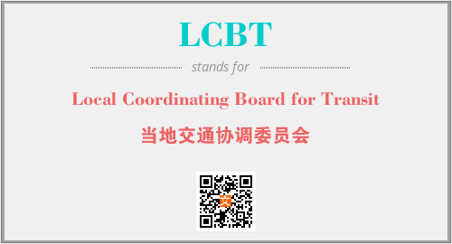 以上为Local Coordinating Board for Transit英文缩略词LCBT的中文解释,以及该英文缩写在英语的流行度、分类和应用领域方面的信息。
