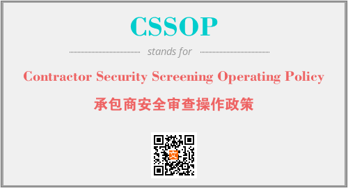 上述内容是“Contractor Security Screening Operating Policy”作为“CSSOP”的缩写,解释为“承包商安全审查操作政策”时的信息,以及英文缩略词CSSOP所代表的英文单词,其对应的中文拼音、详细解释以及在英文中的流行度和相关分类、应用领域及应用示例等。