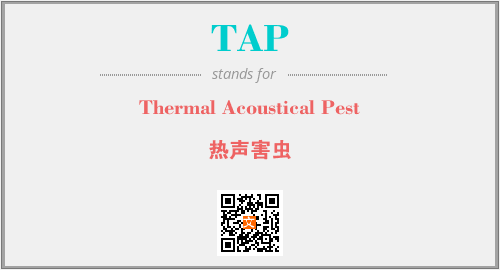 上述内容是“Thermal Acoustical Pest”作为“TAP”的缩写,解释为“热声害虫”时的信息,以及英文缩略词TAP所代表的英文单词,其对应的中文拼音、详细解释以及在英文中的流行度和相关分类、应用领域及应用示例等。