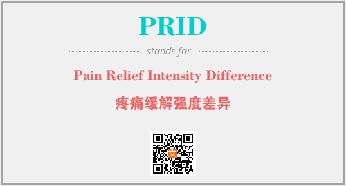 上述内容是“Pain Relief Intensity Difference”作为“PRID”的缩写,解释为“疼痛缓解强度差异”时的信息,以及英文缩略词PRID所代表的英文单词,其对应的中文拼音、详细解释以及在英文中的流行度和相关分类、应用领域及应用示例等。