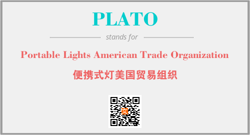 上述内容是“Portable Lights American Trade Organization”作为“PLATO”的缩写,解释为“便携式灯美国贸易组织”时的信息,以及英文缩略词PLATO所代表的英文单词,其对应的中文拼音、详细解释以及在英文中的流行度和相关分类、应用领域及应用示例等。