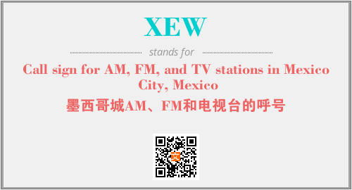 上述内容是“Call sign for AM, FM, and TV stations in Mexico City, Mexico”作为“XEW”的缩写,解释为“墨西哥城AM、FM和电视台的呼号”时的信息,以及英文缩略词XEW所代表的英文单词,其对应的中文拼音、详细解释以及在英文中的流行度和相关分类、应用领域及应用示例等。