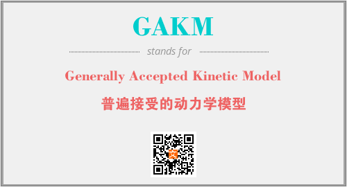 上述内容是“Generally Accepted Kinetic Model”作为“GAKM”的缩写,解释为“普遍接受的动力学模型”时的信息,以及英文缩略词GAKM所代表的英文单词,其对应的中文拼音、详细解释以及在英文中的流行度和相关分类、应用领域及应用示例等。