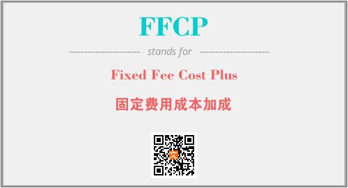 英文缩略词“FFCP”经常作为“Fixed Fee Cost Plus”的英文缩写来使用,中文表示:“固定费用成本加成”。本文将详细介绍英文缩写词FFCP所代表英文单词,其对应的中文拼音、详细解释以及在英语中的流行度。此外,还有关于缩略词FFCP的分类、应用领域及相关应用示例等。