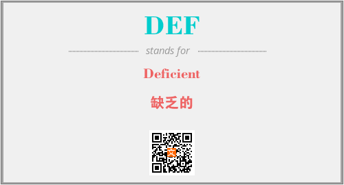 上述内容是“Deficient”作为“DEF”的缩写,解释为“缺乏的”时的信息,以及英文缩略词DEF所代表的英文单词,其对应的中文拼音、详细解释以及在英文中的流行度和相关分类、应用领域及应用示例等。
