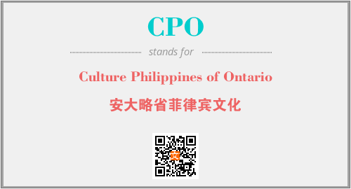 上述内容是“Culture Philippines of Ontario”作为“CPO”的缩写,解释为“安大略省菲律宾文化”时的信息,以及英文缩略词CPO所代表的英文单词,其对应的中文拼音、详细解释以及在英文中的流行度和相关分类、应用领域及应用示例等。