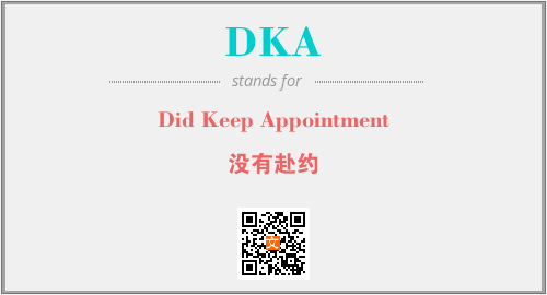上述内容是“Did Keep Appointment”作为“DKA”的缩写,解释为“没有赴约”时的信息,以及英文缩略词DKA所代表的英文单词,其对应的中文拼音、详细解释以及在英文中的流行度和相关分类、应用领域及应用示例等。