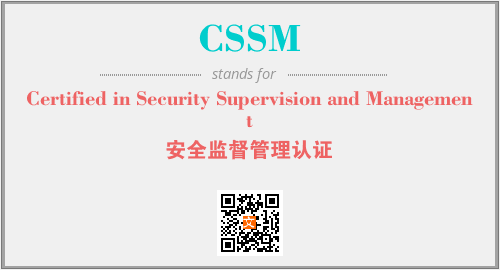 以上为Certified in Security Supervision and Management英文缩略词CSSM的中文解释,以及该英文缩写在英语的流行度、分类和应用领域方面的信息。
