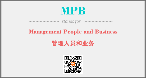 英文缩略词“MPB”经常作为“Management People and Business”的英文缩写来使用,中文表示:“管理人员和业务”。本文将详细介绍英文缩写词MPB所代表英文单词,其对应的中文拼音、详细解释以及在英语中的流行度。此外,还有关于缩略词MPB的分类、应用领域及相关应用示例等。