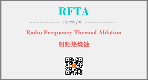 上述内容是“Radio Frequency Thermal Ablation”作为“RFTA”的缩写,解释为“射频热烧蚀”时的信息,以及英文缩略词RFTA所代表的英文单词,其对应的中文拼音、详细解释以及在英文中的流行度和相关分类、应用领域及应用示例等。
