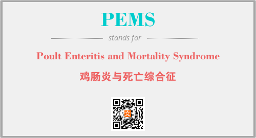 上述内容是“Poult Enteritis and Mortality Syndrome”作为“PEMS”的缩写,解释为“鸡肠炎与死亡综合征”时的信息,以及英文缩略词PEMS所代表的英文单词,其对应的中文拼音、详细解释以及在英文中的流行度和相关分类、应用领域及应用示例等。