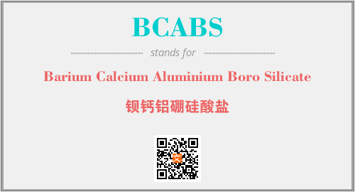上述内容是“Barium Calcium Aluminium Boro Silicate”作为“BCABS”的缩写,解释为“钡钙铝硼硅酸盐”时的信息,以及英文缩略词BCABS所代表的英文单词,其对应的中文拼音、详细解释以及在英文中的流行度和相关分类、应用领域及应用示例等。