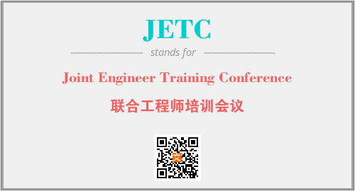 英文缩略词“JETC”经常作为“Joint Engineer Training Conference”的英文缩写来使用,中文表示:“联合工程师培训会议”。本文将详细介绍英文缩写词JETC所代表英文单词,其对应的中文拼音、详细解释以及在英语中的流行度。此外,还有关于缩略词JETC的分类、应用领域及相关应用示例等。