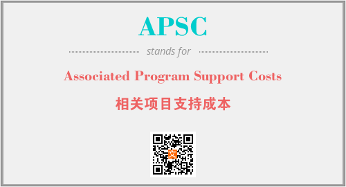 上述内容是“Associated Program Support Costs”作为“APSC”的缩写,解释为“相关项目支持成本”时的信息,以及英文缩略词APSC所代表的英文单词,其对应的中文拼音、详细解释以及在英文中的流行度和相关分类、应用领域及应用示例等。