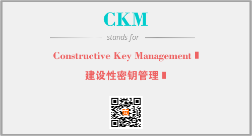 英文缩略词“CKM”经常作为“Constructive Key Management®”的英文缩写来使用,中文表示:“建设性密钥管理®”。本文将详细介绍英文缩写词CKM所代表英文单词,其对应的中文拼音、详细解释以及在英语中的流行度。此外,还有关于缩略词CKM的分类、应用领域及相关应用示例等。