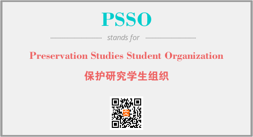 上述内容是“Preservation Studies Student Organization”作为“PSSO”的缩写,解释为“保护研究学生组织”时的信息,以及英文缩略词PSSO所代表的英文单词,其对应的中文拼音、详细解释以及在英文中的流行度和相关分类、应用领域及应用示例等。
