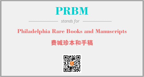 英文缩略词“PRBM”经常作为“Philadelphia Rare Books and Manuscripts”的英文缩写来使用,中文表示:“费城珍本和手稿”。本文将详细介绍英文缩写词PRBM所代表英文单词,其对应的中文拼音、详细解释以及在英语中的流行度。此外,还有关于缩略词PRBM的分类、应用领域及相关应用示例等。