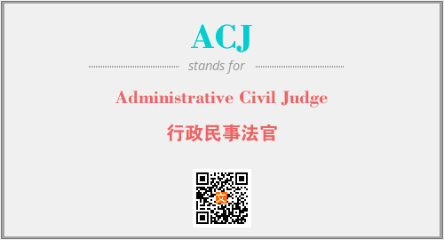 上述内容是“Administrative Civil Judge”作为“ACJ”的缩写,解释为“行政民事法官”时的信息,以及英文缩略词ACJ所代表的英文单词,其对应的中文拼音、详细解释以及在英文中的流行度和相关分类、应用领域及应用示例等。
