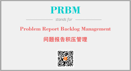上述内容是“Problem Report Backlog Management”作为“PRBM”的缩写,解释为“问题报告积压管理”时的信息,以及英文缩略词PRBM所代表的英文单词,其对应的中文拼音、详细解释以及在英文中的流行度和相关分类、应用领域及应用示例等。
