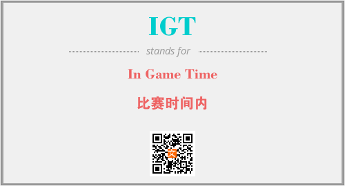 英文缩略词“IGT”经常作为“In Game Time”的英文缩写来使用,中文表示:“比赛时间内”。本文将详细介绍英文缩写词IGT所代表英文单词,其对应的中文拼音、详细解释以及在英语中的流行度。此外,还有关于缩略词IGT的分类、应用领域及相关应用示例等。