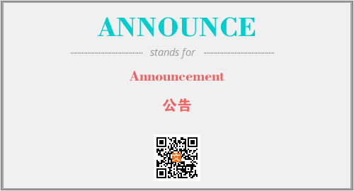上述内容是“Announcement”作为“ANNOUNCE”的缩写,解释为“公告”时的信息,以及英文缩略词ANNOUNCE所代表的英文单词,其对应的中文拼音、详细解释以及在英文中的流行度和相关分类、应用领域及应用示例等。
