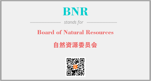 上述内容是“Board of Natural Resources”作为“BNR”的缩写,解释为“自然资源委员会”时的信息,以及英文缩略词BNR所代表的英文单词,其对应的中文拼音、详细解释以及在英文中的流行度和相关分类、应用领域及应用示例等。