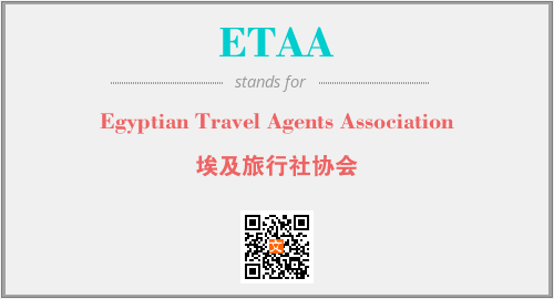 英文缩略词“ETAA”经常作为“Egyptian Travel Agents Association”的英文缩写来使用,中文表示:“埃及旅行社协会”。本文将详细介绍英文缩写词ETAA所代表英文单词,其对应的中文拼音、详细解释以及在英语中的流行度。此外,还有关于缩略词ETAA的分类、应用领域及相关应用示例等。
