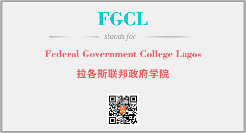 英文缩略词“FGCL”经常作为“Federal Government College Lagos”的英文缩写来使用,中文表示:“拉各斯联邦政府学院”。本文将详细介绍英文缩写词FGCL所代表英文单词,其对应的中文拼音、详细解释以及在英语中的流行度。此外,还有关于缩略词FGCL的分类、应用领域及相关应用示例等。