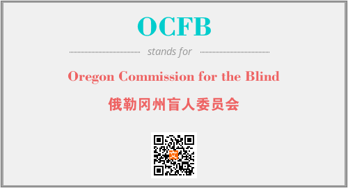 上述内容是“Oregon Commission for the Blind”作为“OCFB”的缩写,解释为“俄勒冈州盲人委员会”时的信息,以及英文缩略词OCFB所代表的英文单词,其对应的中文拼音、详细解释以及在英文中的流行度和相关分类、应用领域及应用示例等。