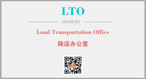 英文缩略词“LTO”经常作为“Land Transportation Office”的英文缩写来使用,中文表示:“陆运办公室”。本文将详细介绍英文缩写词LTO所代表英文单词,其对应的中文拼音、详细解释以及在英语中的流行度。此外,还有关于缩略词LTO的分类、应用领域及相关应用示例等。