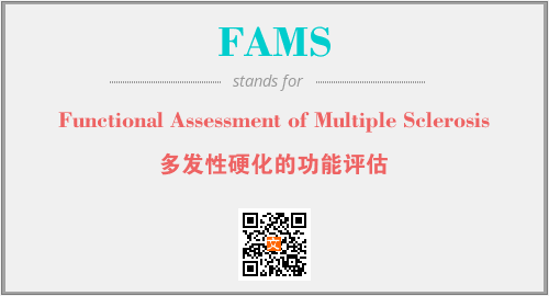 上述内容是“Functional Assessment of Multiple Sclerosis”作为“FAMS”的缩写,解释为“多发性硬化的功能评估”时的信息,以及英文缩略词FAMS所代表的英文单词,其对应的中文拼音、详细解释以及在英文中的流行度和相关分类、应用领域及应用示例等。