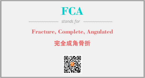 上述内容是“Fracture, Complete, Angulated”作为“FCA”的缩写,解释为“完全成角骨折”时的信息,以及英文缩略词FCA所代表的英文单词,其对应的中文拼音、详细解释以及在英文中的流行度和相关分类、应用领域及应用示例等。