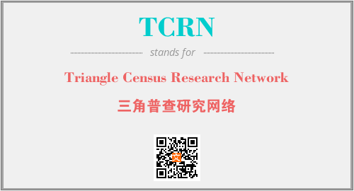 上述内容是“Triangle Census Research Network”作为“TCRN”的缩写,解释为“三角普查研究网络”时的信息,以及英文缩略词TCRN所代表的英文单词,其对应的中文拼音、详细解释以及在英文中的流行度和相关分类、应用领域及应用示例等。