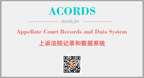 上述内容是“Appellate Court Records and Data System”作为“ACORDS”的缩写,解释为“上诉法院记录和数据系统”时的信息,以及英文缩略词ACORDS所代表的英文单词,其对应的中文拼音、详细解释以及在英文中的流行度和相关分类、应用领域及应用示例等。