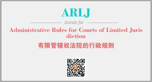 上述内容是“Administrative Rules for Courts of Limited Jurisdiction”作为“ARLJ”的缩写,解释为“有限管辖权法院的行政规则”时的信息,以及英文缩略词ARLJ所代表的英文单词,其对应的中文拼音、详细解释以及在英文中的流行度和相关分类、应用领域及应用示例等。