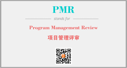 英文缩略词“PMR”经常作为“Program Management Review”的英文缩写来使用,中文表示:“项目管理评审”。本文将详细介绍英文缩写词PMR所代表英文单词,其对应的中文拼音、详细解释以及在英语中的流行度。此外,还有关于缩略词PMR的分类、应用领域及相关应用示例等。