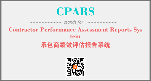 上述内容是“Contractor Performance Assessment Reports System”作为“CPARS”的缩写,解释为“承包商绩效评估报告系统”时的信息,以及英文缩略词CPARS所代表的英文单词,其对应的中文拼音、详细解释以及在英文中的流行度和相关分类、应用领域及应用示例等。