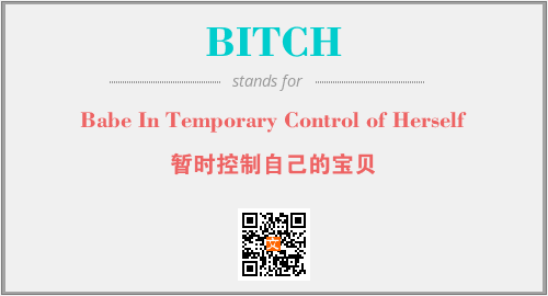 英文缩略词“BITCH”经常作为“Babe In Temporary Control of Herself”的英文缩写来使用,中文表示:“暂时控制自己的宝贝”。本文将详细介绍英文缩写词BITCH所代表英文单词,其对应的中文拼音、详细解释以及在英语中的流行度。此外,还有关于缩略词BITCH的分类、应用领域及相关应用示例等。
