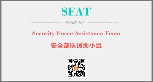上述内容是“Security Force Assistance Team”作为“SFAT”的缩写,解释为“安全部队援助小组”时的信息,以及英文缩略词SFAT所代表的英文单词,其对应的中文拼音、详细解释以及在英文中的流行度和相关分类、应用领域及应用示例等。