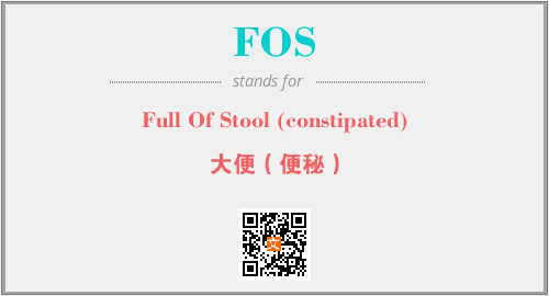 上述内容是“Full Of Stool (constipated)”作为“FOS”的缩写,解释为“大便(便秘)”时的信息,以及英文缩略词FOS所代表的英文单词,其对应的中文拼音、详细解释以及在英文中的流行度和相关分类、应用领域及应用示例等。
