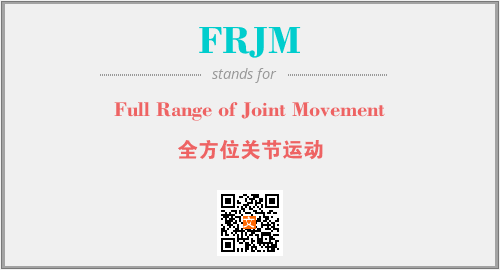 上述内容是“Full Range of Joint Movement”作为“FRJM”的缩写,解释为“全方位关节运动”时的信息,以及英文缩略词FRJM所代表的英文单词,其对应的中文拼音、详细解释以及在英文中的流行度和相关分类、应用领域及应用示例等。