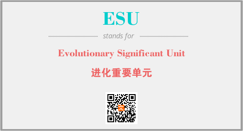 英文缩略词“ESU”经常作为“Evolutionary Significant Unit”的英文缩写来使用,中文表示:“进化重要单元”。本文将详细介绍英文缩写词ESU所代表英文单词,其对应的中文拼音、详细解释以及在英语中的流行度。此外,还有关于缩略词ESU的分类、应用领域及相关应用示例等。